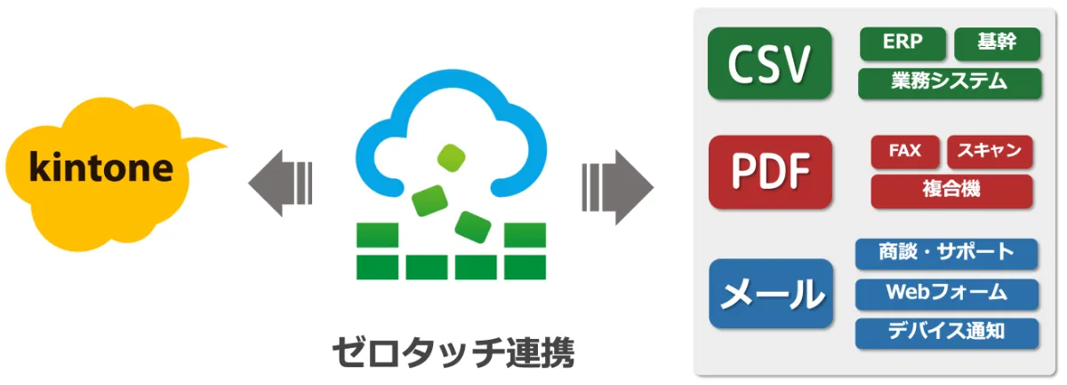 基幹・業務システムなどから出力されるCSVやPDFファイルをkintoneに自動連携します。