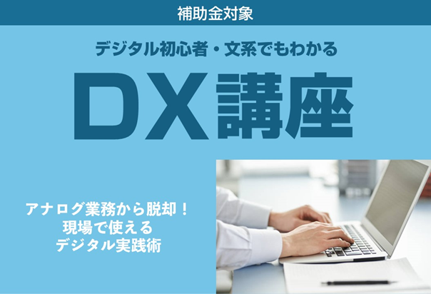 この講座は、「DX(デジタルトランスフォーメーション)と言われても何から始めていいのか分からない」、「パソコンやITが苦手だから、自分には関係ないと思っていた」などと思われている方にこそ受けていただきたい、初心者・非IT系の方に向けた実践型DX入門講座です。
