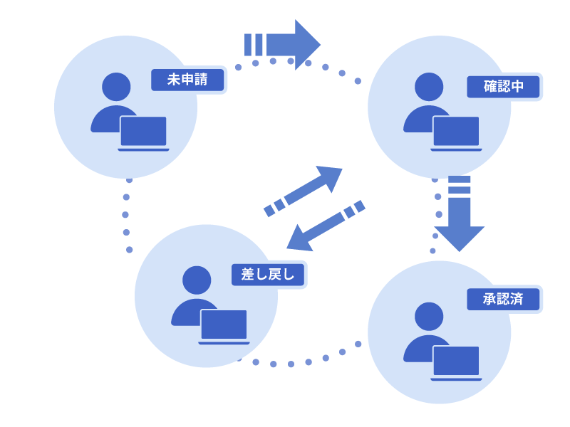 業務内容にあわせて自由にワークフローを設計し、業務プロセスに沿った進捗管理を可能にします。。申請が必要な業務も、担当者と進捗が視覚化されるため、状況が把握しやすくなります。